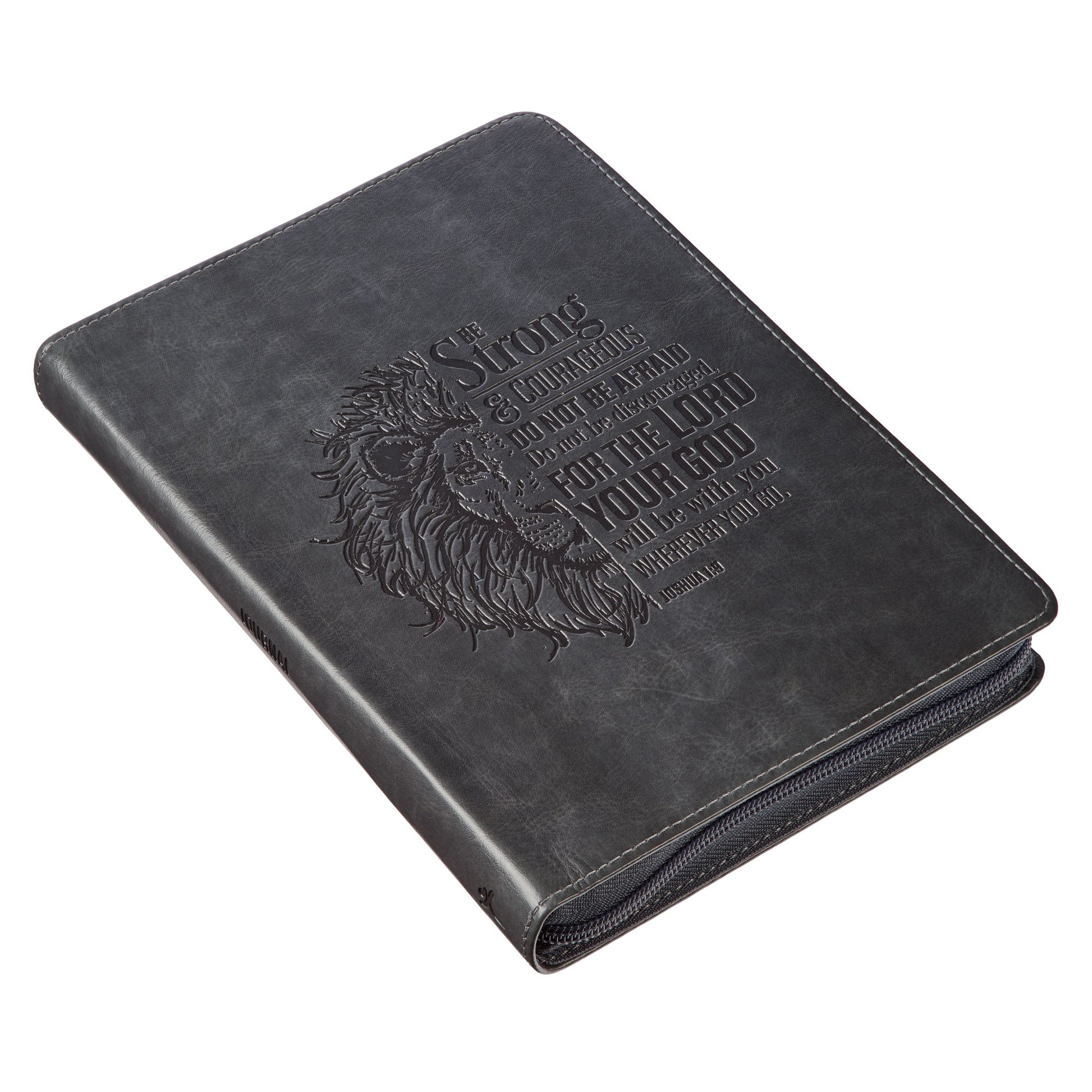 Be Strong and Courageous Classic Gray Faux Leather Journal with Zipper Closure - Joshua 1:9