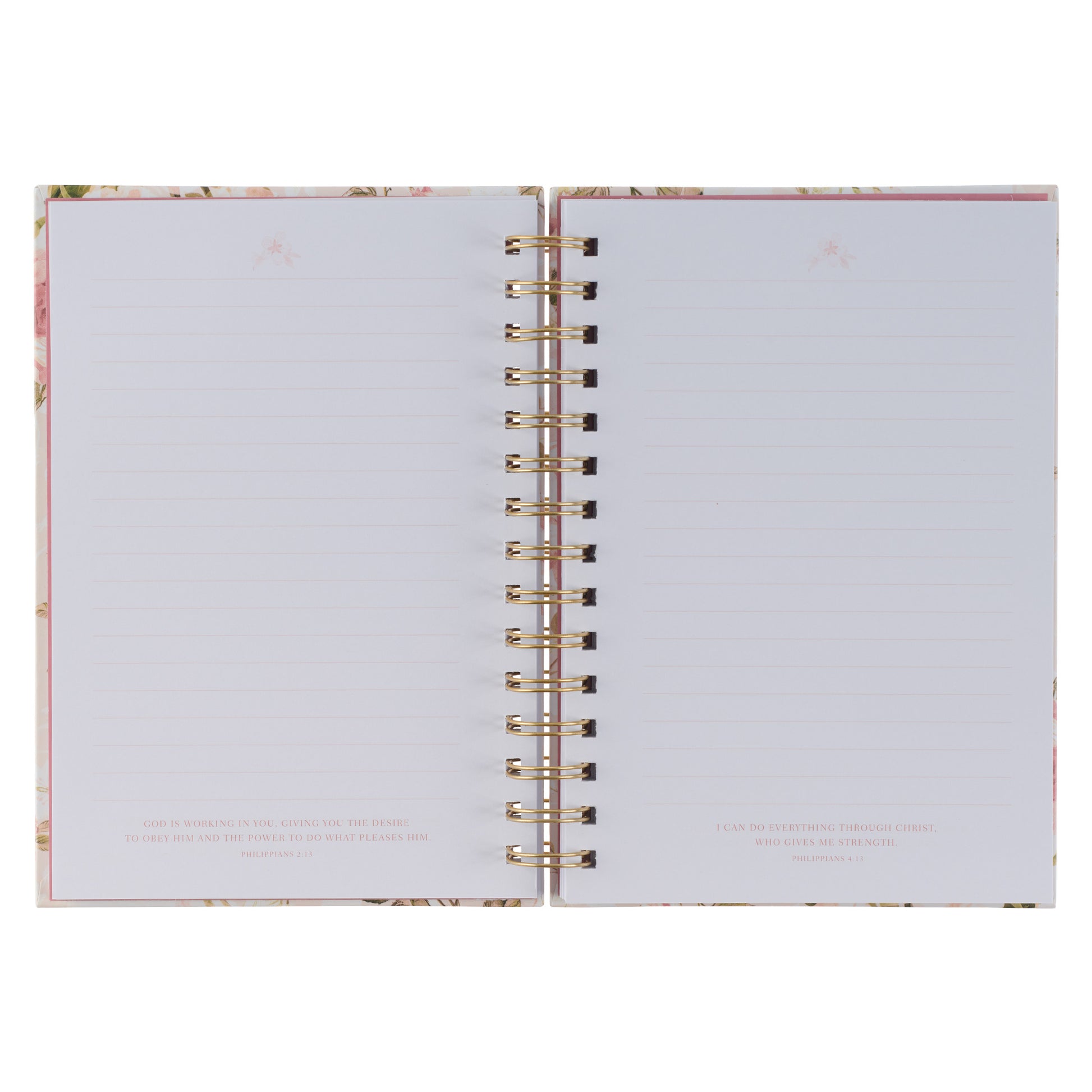 The spiral hardcover is sturdy enough to take to work, church, or coffee shops and will not weigh down your purse or bag. Personalize this lovely journal by writing a name or message on the presentation page in the front. Fill each lined page with favorite quotes, to-do lists, bullet entries, notes, or even drawings, and meditate on the additional Scripture verses at the bottom of each page!