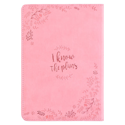 Write an encouraging note on the presentation page in the front of the I Know the Plans Pink Faux Leather Classic Journal when you give it as a gift to a recent graduate or someone choosing a new path in life. The artistically designed Scripture featured on the flexible cover will be a daily reminder that the LORD is in control and knows what is to come.