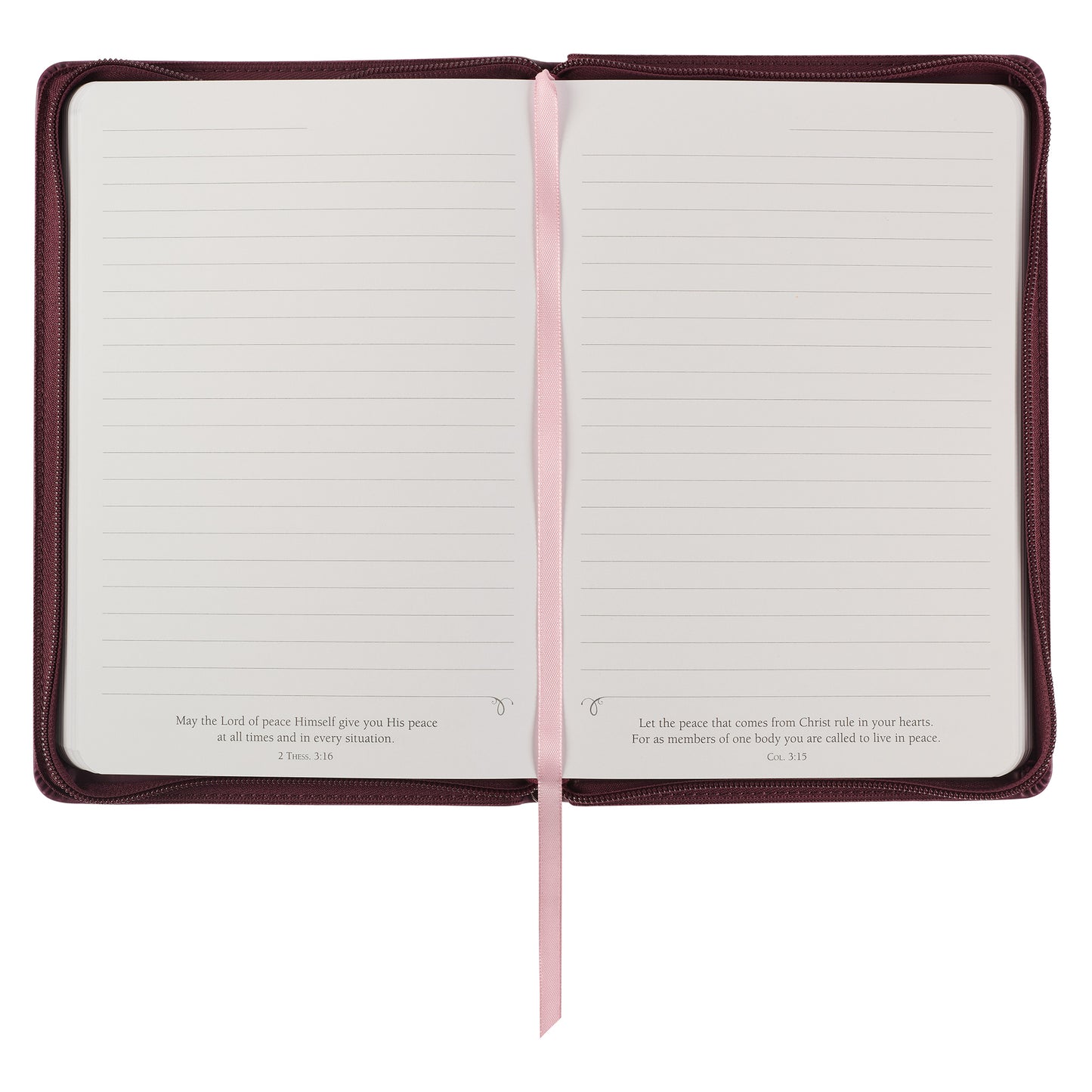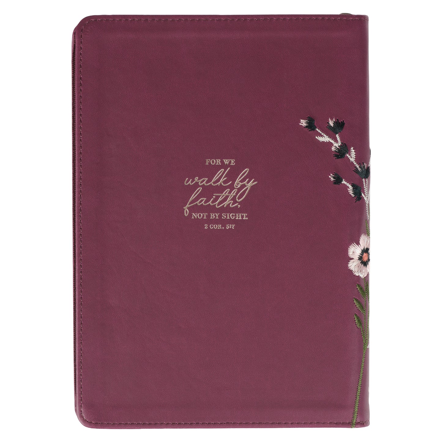 The beautifully embroidered design on the Walk By Faith Beet Red Faux Leather Classic Journal with Zippered Closure will delight any woman but paired with the sentiment; this journal will be well received by a friend facing life's challenges. The Walk By Faith Beet Red Faux Leather Classic Journal with Zippered Closure will help her plan step by step how to face life with faith.