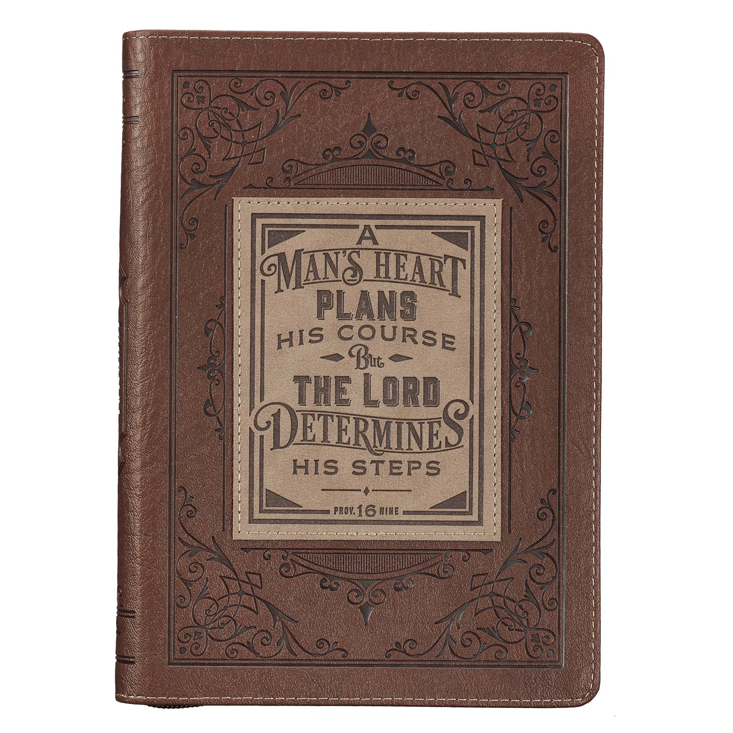 A Man's Heart Brown Faux Leather Classic Journal is a reminder that God's plan for your life is not a mystery: commit your plans to the LORD through prayer and counsel, take steps to reach your goals, and trust that God will take care of the rest. This encouraging message will be well received by any dad planning for his family's future, a young man planning his career, or a student planning his course of study.